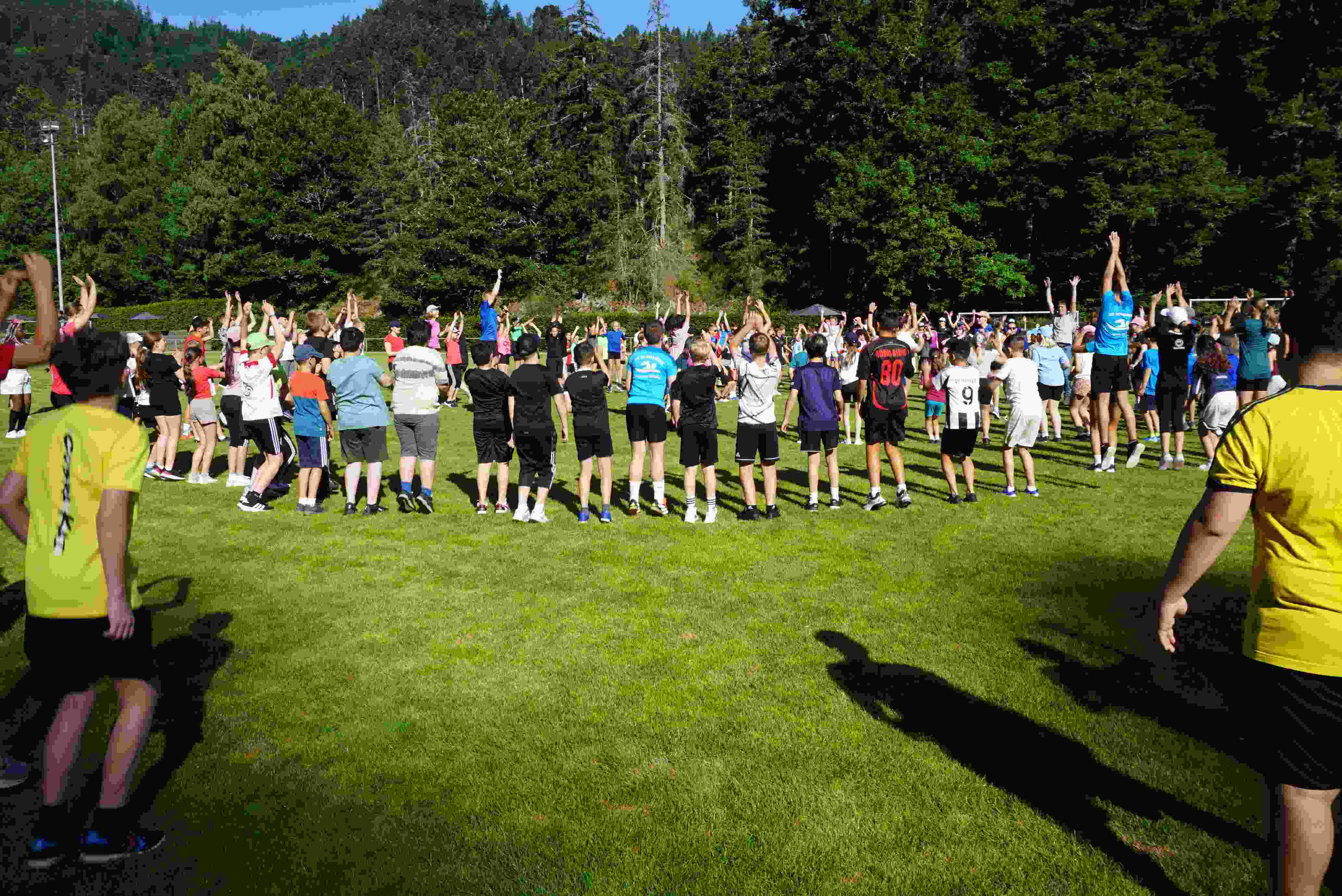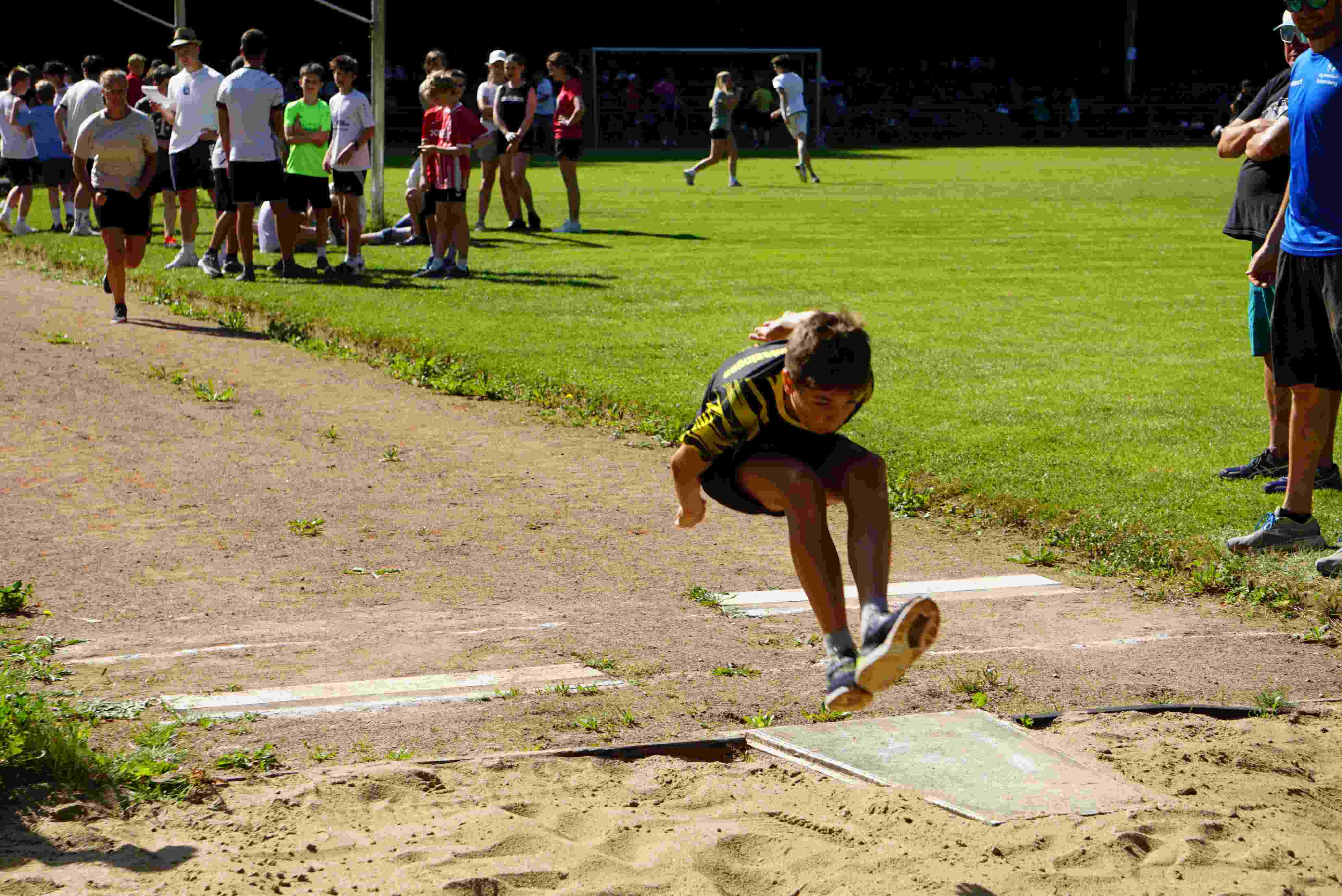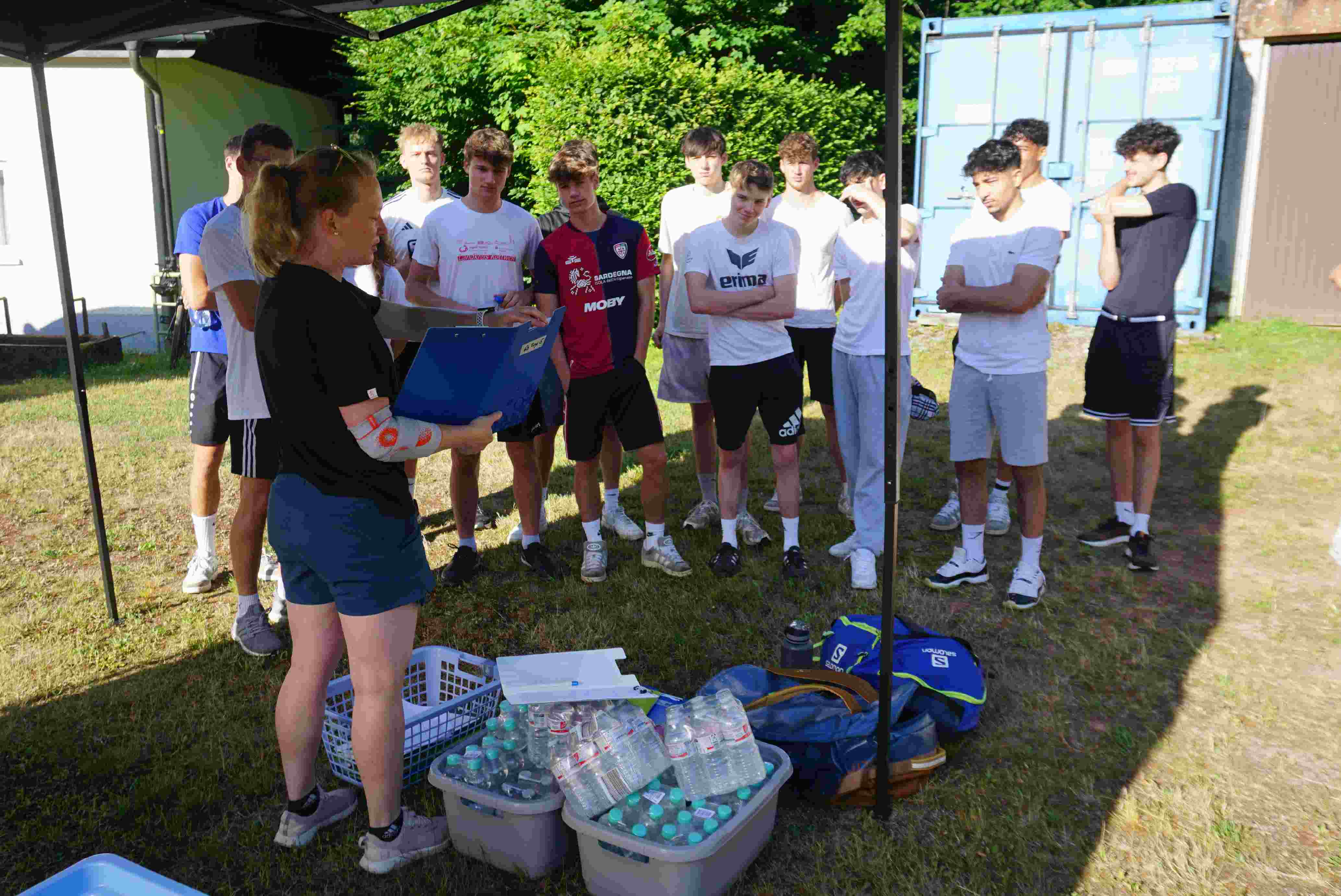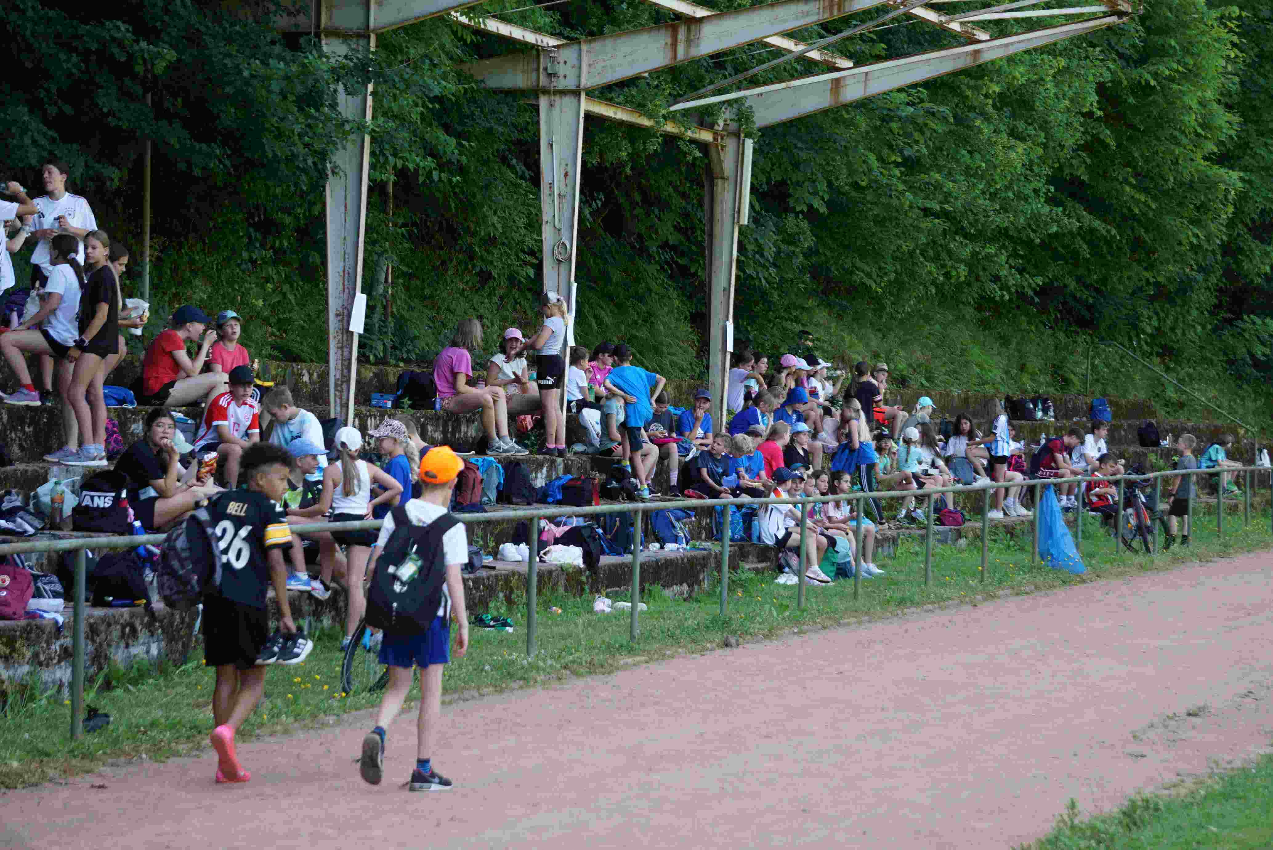 Der erste Termin musste noch witterungsbedingt ausfallen, aber nun war es soweit: Bei strahlendem Sonnenschein trafen sich alle 5.-7.Klässler auf dem Raustein zu den diesjährigen Bundesjugendspielen. Gegen die anschwellende Hitze hatte man extra Sonnenschirme, einen kleinen Pavillon und sogar ein größeres Zelt aufgebaut, für die gute Laune beschallte Thomas Kuhner von der Tonstudio-AG den Platz mit Musik. Zu den Klängen von „Bella Napoli“ begann das lockere Aufwärmen mit kleineren Gymnastikeinlagen, bevor man sich in drei großen Jahrgangskreisen endgültig locker machte. Dann gingen die Klassen, angeleitet von ihren Staffelführer*innen des Lk Sport und Geographie, zum Startpunkt ihrer ersten von drei Disziplinen, die wie immer aus Werfen, Springen und Laufen bestanden. Zum großen Finale traten die Jahrgänge zum Staffellauf an, der in diesem Jahr aus einem 16 x 50m-Lauf bestand, wie immer bestens kommentiert von Benjamin Schöwe. Im ersten Lauf konnte sich die 5b durchsetzen, den zweiten gewann die 6a und den dritten die 7a. Herzlichen Glückwunsch!