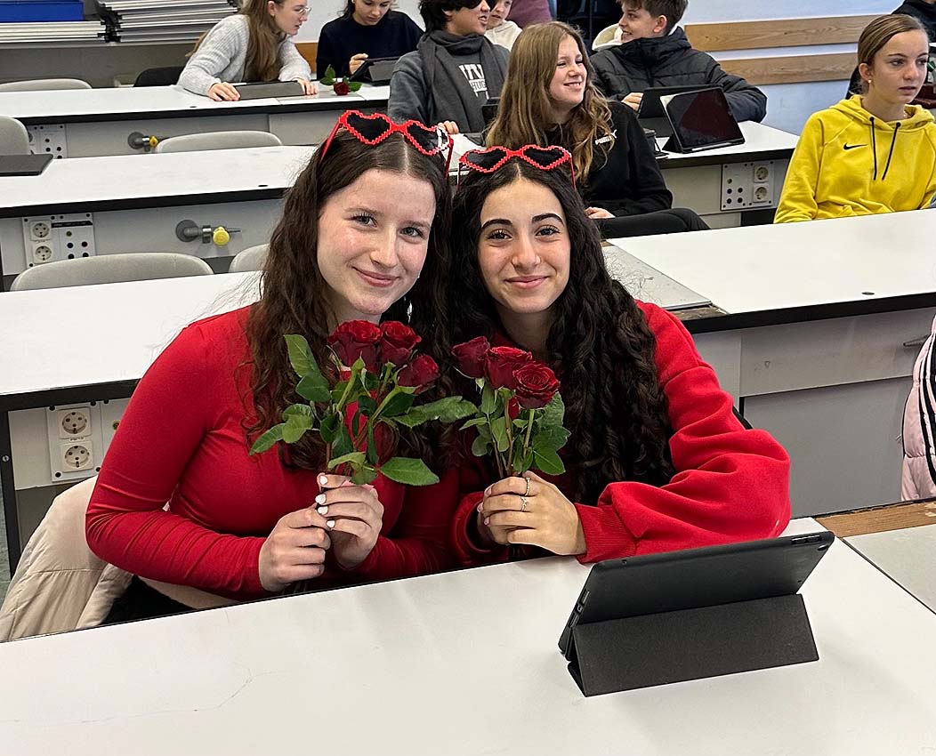Am 14.02. ist Valentinstag. Schon im späten Mittelalter wurde dieser Tag mit der romantischen Liebe in Verbindung gebracht, vor allem im englischsprachigen Raum. Nach dem zweiten Weltkrieg wurde dieser Brauch durch die in Deutschland stationierten Soldaten hierzulande bekannt und beliebt. Und so ermöglicht es die Eine Welt-AG auch an unserer Schule, einem geliebten Menschen an diesem Tag als Zeichen der Zuneigung eine Rose zukommen zu lassen. Zwei Wochen vorher hatten alle Schülerinnen und Schüler die Möglichkeit gehabt, fair gehandelte Rosen bei der Eine Welt-AG zu bestellen. Diese Gelegenheit war von vielen wahrgenommen worden und so wurde am Valentinstag über 150 Personen eine Rose überreicht, einige mit einer Botschaft, die meisten aber von unbekannt. Eine Herz erwärmende Geste in dieser kalten Jahreszeit.