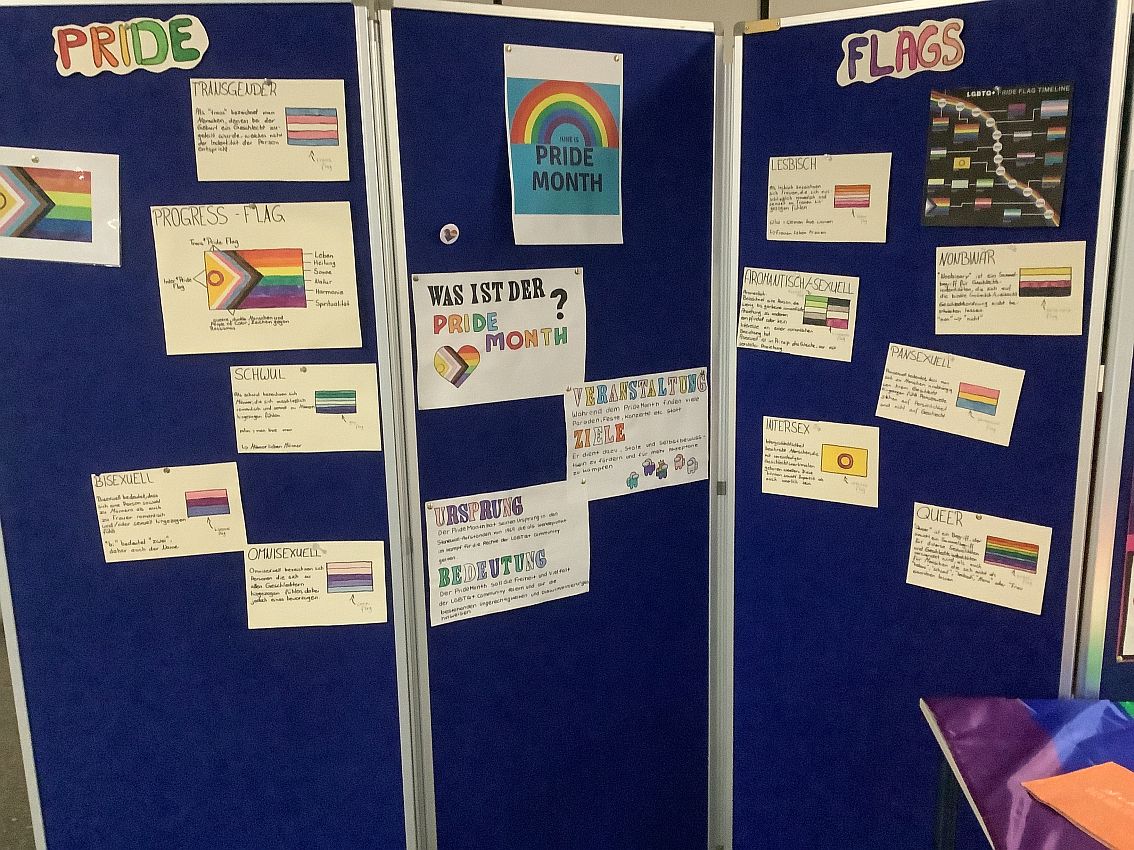 Vor 30 Jahren wurde von der UNESCO der Internationale Tag der Toleranz ausgerufen, der seither immer am 16. November jedes Jahres stattfindet. Anlässlich dieses Jubiläums organisierten verschiedene Ethik- und Religionsklassen gemeinsam mit der Vielfalt-AG eine Ausstellung, um auf die verschiedensten Arten der Diskriminierung aufmerksam zu machen, aber auch um für mehr Toleranz zu werben. In der Ausstellung werden die unterschiedlichsten Gruppen angesprochen, die Formen der Intoleranz erleben. So geht es um Vorurteile und Benachteiligung aufgrund von Hautfarbe, Behinderungen, Herkunft, Alter, Geschlecht, Religion oder sexueller Orientierung. Neben den Schülerarbeiten ist auch die Ausstellung „Wasihrnichtseht“ von Dominik Lucha zu sehen, in der alltäglicher Rassismus in Deutschland thematisiert wird. Darüber hinaus konnten sich die Schülerinnen und Schülern am Eröffnungstag an Ständen aktiv an kleineren Aktionen beteiligen. Die Ausstellung wird bis Mittwoch, den 26.11.25, zu sehen sein.