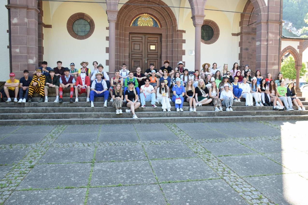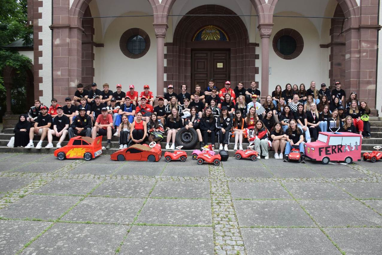 Das Gröbste (die schriftlichen Prüfungen) haben sie hinter sich und in zwei Wochen ist für die jetzige 12er die Schulzeit vorbei. Zeit für die traditionelle Mottowoche, für die sich die Abiturienten für folgenden Themen entschieden haben: erster Schultag, Kostüm zum ersten Buchstaben des Vornamens, Malle, Kindheitshelden und das Abimotto Ferrari.