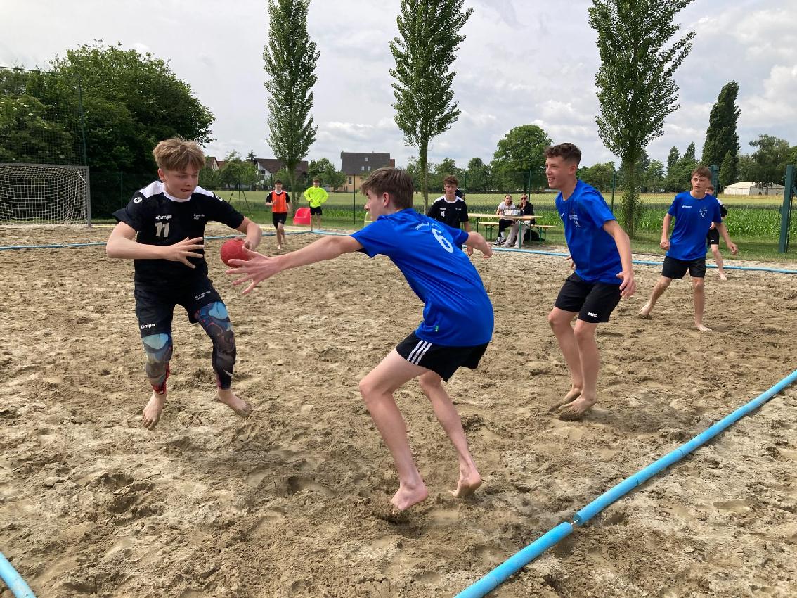 BeachhandballAm 3. Juni 2025 tauschten 25 Schüler*innen des Gymnasiums die gewohnte Sporthalle gegen eine Arena im Sand. Gemeinsam mit den Sportlehrkräften Silke Harter und Tobias Kolb ging es zur Beachanlage des TuS Altenheim in Neuried zum Schulsportwettbewerb „Jugend trainiert für Olympia – Beachhandball“.