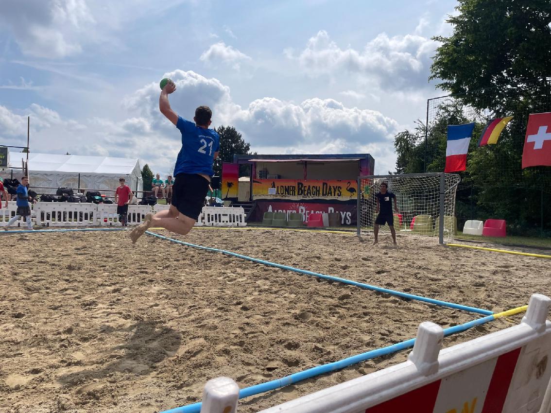 Beachhandball ist eine moderne und im Schulsport gut einsetzbare Variante des klassischen Handballs. Charakteristisch sind vereinfachte Spielregeln: Kein Körperkontakt, Überzahlspiel sowie eine Abwurflinie anstelle des Wurfkreises. Dies ermöglicht einen leichteren Einstieg – auch für Spieler*innen ohne Vereinserfahrung. So konnten die beiden Sportlehrkräfte gemeinsam mit den Vereinsspieler*innen auch einige „Nicht-Handballer*innen“ für den Tag im Sand begeistern. Im Vorfeld wurden bei einem Schnuppertraining die grundlegenden Regeln des Beachhandballs vermittelt. Auch Trickwürfe, die beim Beachhandball bei erfolgreichem Abschluss doppelt gewertet werden, wie beispielsweise ein Sprungwurf mit 360°-Drehung oder der klassische Kempa-Trick, wurden geübt.