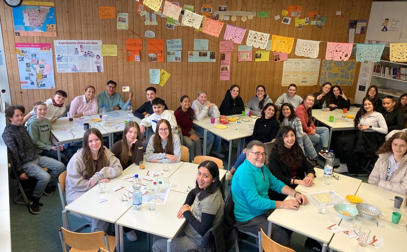 Am 31.03.2025 fand die traditionelle "Tertulia" der Spanischfachschaft am Gymnasium statt. Dabei kamen rund 25 Spanischschüler*innen aus den Klassen 8 bis 10 mit neun Muttersprachler*innen aus der spanischsprachigen Welt in einer Art Gesprächskreis zusammen, um ihre Spanischkenntnisse anzuwenden und zu vertiefen.