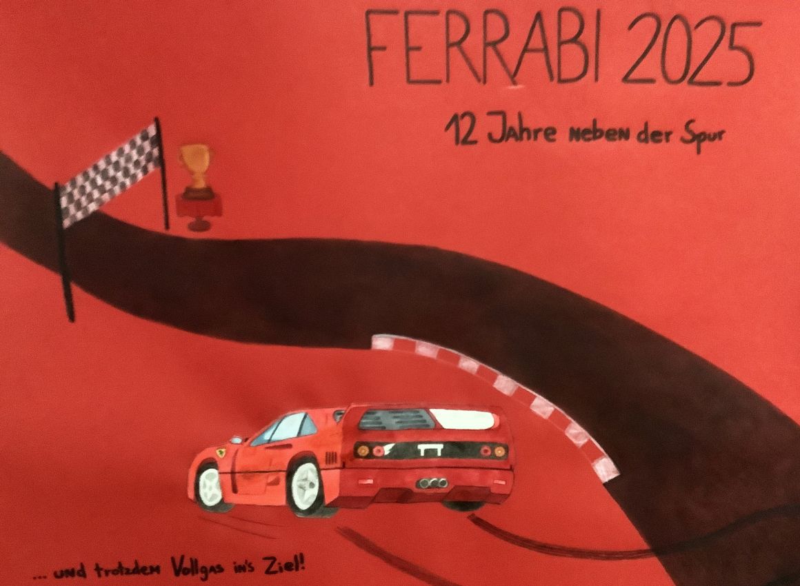 Jetzt geht es für unsere Abiturienten unter dem Abimotto „Ferrabi – 12 Jahre neben der Spur“ in die Schlussrunde, die mit dem Fach Deutsch eingeleitet worden ist. Begrüßt von aufmunternden Plakaten am Aulaeingang stellten sich 39 Schülerinnen und Schüler des Leistungskurses zuerst der Herausforderung, bevor – nach dem verlängerten 1.Mai-Wochenende – alle anderen endlich auch durchstarten können. Insgesamt nehmen in diesem Jahr 77 Schülerinnen und Schüler am schriftlichen Finale teil, das erst am 21.Mai mit der letzten Prüfung im Fach Chemie endet. Die Praxisprüfungen im Fach Sport (Mannschaft) und Musik waren dem schriftlichen Abitur schon vorausgegangen, die Sportler müssen noch ein zweites Mal ran, gefolgt von den Kommunikationsprüfungen der Fremdsprachler, bis dann Anfang Juli die mündlichen Prüfungen die Schulzeit unserer Abiturienten beenden. Hoffen wir, dass alle über die Ziellinie kommen und am 12.Juli feierlich verabschiedet werden können.