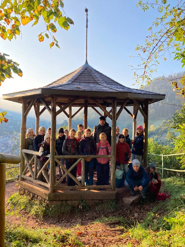 WandertagEtwas frisch war es schon am Morgen, aber der strahlend blaue Himmel verhieß Gutes für den diesjährigen Wandertag, zu dem die Schülerinnen und Schüler der Unter- und Mittelstufe aufbrachen. Die Ziele waren wie immer unterschiedlich weit gesteckt. Einige Klassen starteten direkt vom Gymnasium aus und machten eine Rundwanderung, z.B. über die Hohenschramberg, Lauterbach oder Tennenbronn, andere hingegen steuerte entferntere Orte wie Waldmössingen, Königsfeld oder Aichhalden an und nahmen dann für den Hin- oder Rückweg den Bus. Die Oberstufe hingegen blieb an der Schule. Die 11er machten Übungen zum Teambuilding und beschäftigten sich mit BOGY, die 12er hatten einen besonderen Stundenplan mit ausgewählten Fächern. So oder so, für alle Schülerinnen und Schüler war es mal etwas anderes abseits des Unterrichtsalltags.