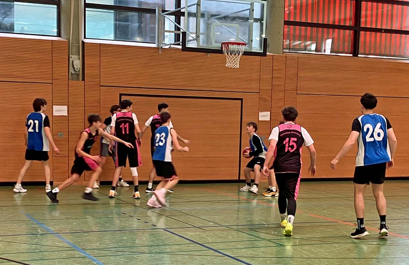 Die ersten beiden Spiele gegen das THG aus Freiburg und das Gymnasium aus Weil gingen verloren, das anschließende Spiel gegen das Grimmelshausen Gymnasium aus Offenburg gestalteten beide Teams bis zum Schluss extrem spannend. Nach einem nervenaufreibenden Spiel konnte unsere Mannschaft mit nur zwei Punkten Vorsprung dieses am Ende für sich entscheiden.