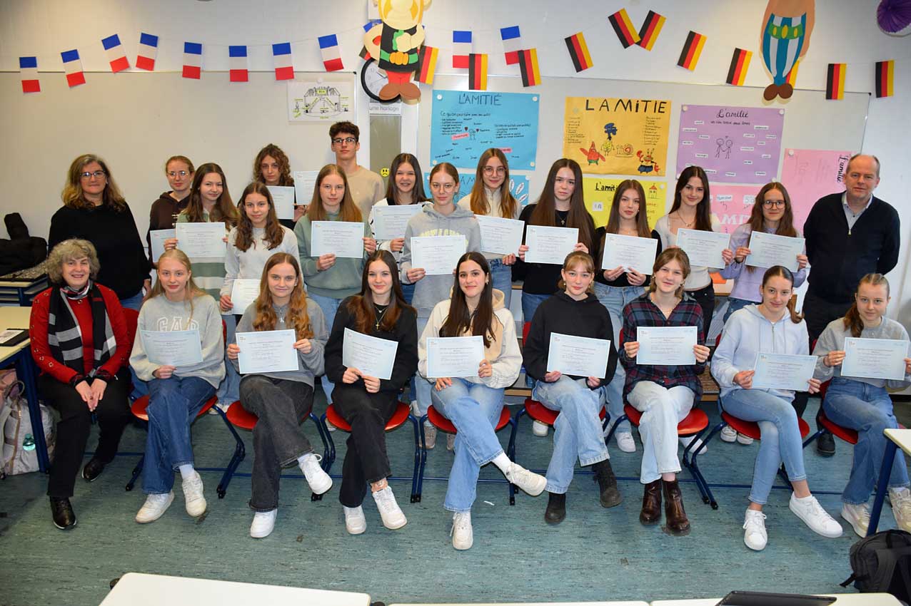 Weiterlesen...Im Mai sind alle Französischlernenden aus Klasse 9 nach Niederbronn-les-Bains (Elsass) gefahren. Im Mittelpunkt stand die deutsch-französische Freundschaft, die wir aktuell mit einer Partnerschule in Sarre-Union pflegen. Neben dem Besuch des Lycée Georges Imbert haben die Schüler Spuren der...