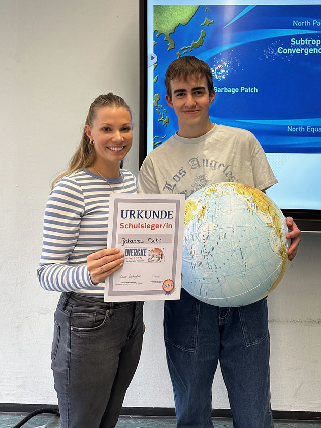 Weiterlesen...Auch in diesem Jahr hat unsere Schule wieder am DIERCKE Wissen Wettbewerb teilgenommen. Dabei handelt es sich um Deutschlands größten Geographiewettbewerb. Die Schülerinnen und Schüler der Klassen 7 und 10 müssen sich dabei Fragen zu verschiedenen geographischen Themen aus den Bereichen...