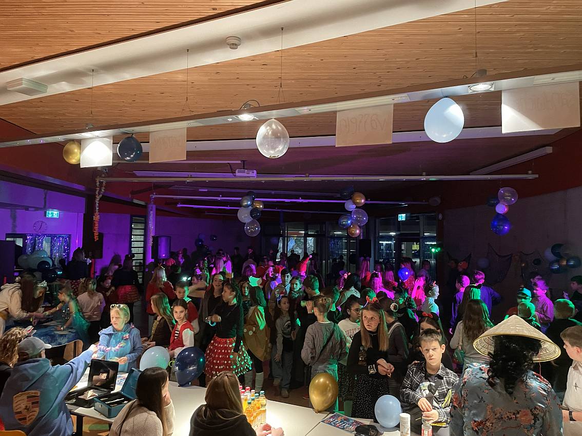 Am Freitag, den 12. Dezember, verwandelte sich unsere Schule in eine bunte Disney-Welt: Die Unterstufendisco für die Klassen 5 bis 7 sorgte für beste Stimmung und eine rundum gelungene Feier. Zu dem Motto erschienen die Schülerinnen und Schüler in besonders kreativen Kostümen – von klassischen Figuren bis hin zu ausgefallenen Eigeninterpretationen war alles dabei. Dank der großartigen DJ-Künste der Tonstudio-AG war die Tanzfläche von Anfang bis Ende stets gut gefüllt. Es wurde ausgelassen getanzt, gefeiert und gelacht. Ein besonderes Highlight des Abends war der Kostümwettbewerb, bei dem nicht nur die fantasievollen Verkleidungen, sondern auch teilweise sehr sportliche Darbietungen das Publikum begeisterten. Für das leibliche Wohl sorgte die SMV mit Getränken, Toasts und frisch gebackenen Waffeln. So gestärkt konnten alle bis zum Schluss durchtanzen und die tolle Atmosphäre genießen. Die Unterstufendisco war ein voller Erfolg und wird allen Beteiligten sicher noch lange in Erinnerung bleiben.