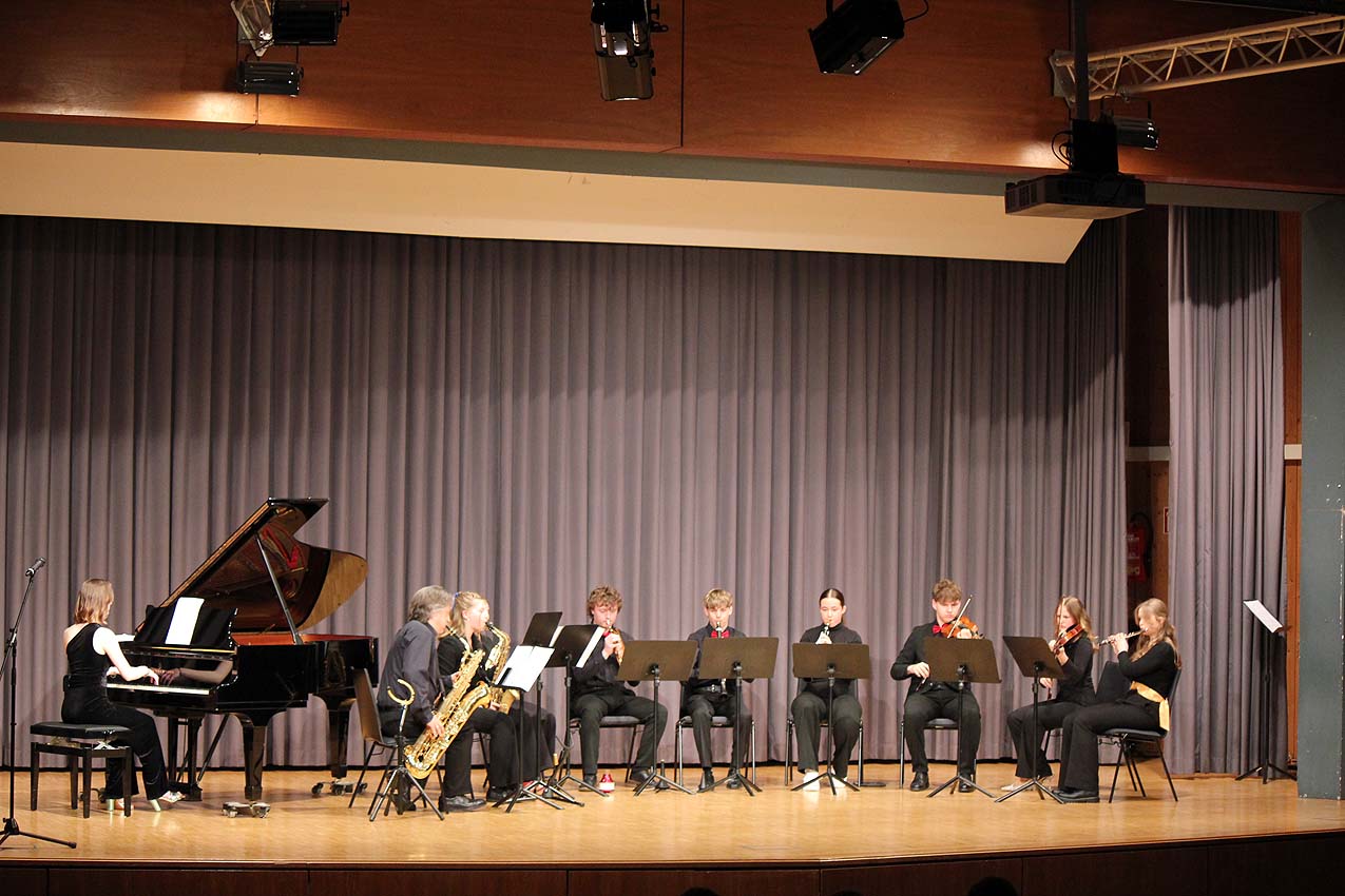 Together, schon das Motto des Kurs-Konzertes betonte das Verbindende der Musik, und so waren viele in der Aula zusammengekommen, um gemeinsam das Konzert des Leistungskurses Musik zu genießen. Eröffnet wurde es mit der Ouvertüre der "Zauberflöte", die das Ensemble mit großer Spielfreude...
