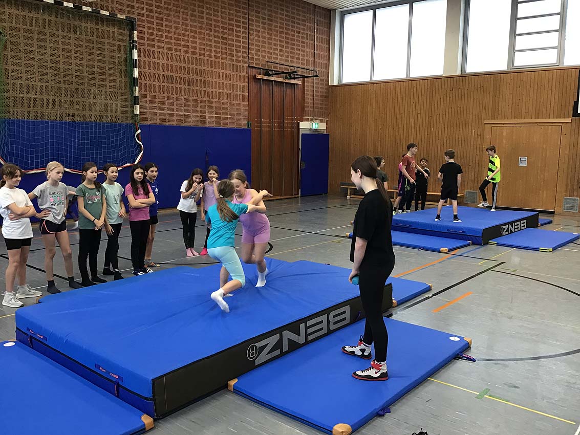 Für unser neues Sportthema „Miteinander- und gegeneinander kämpfen“ haben wir zu Beginn der Einheit Besuch von Liv (Klasse 10) und Ian King (Klasse 11) gehabt. Die beiden sind erfahrene Ringer und haben mit uns ein cooles Training gemacht. Als Erstes haben wir uns mit einem kurzen Spiel und...