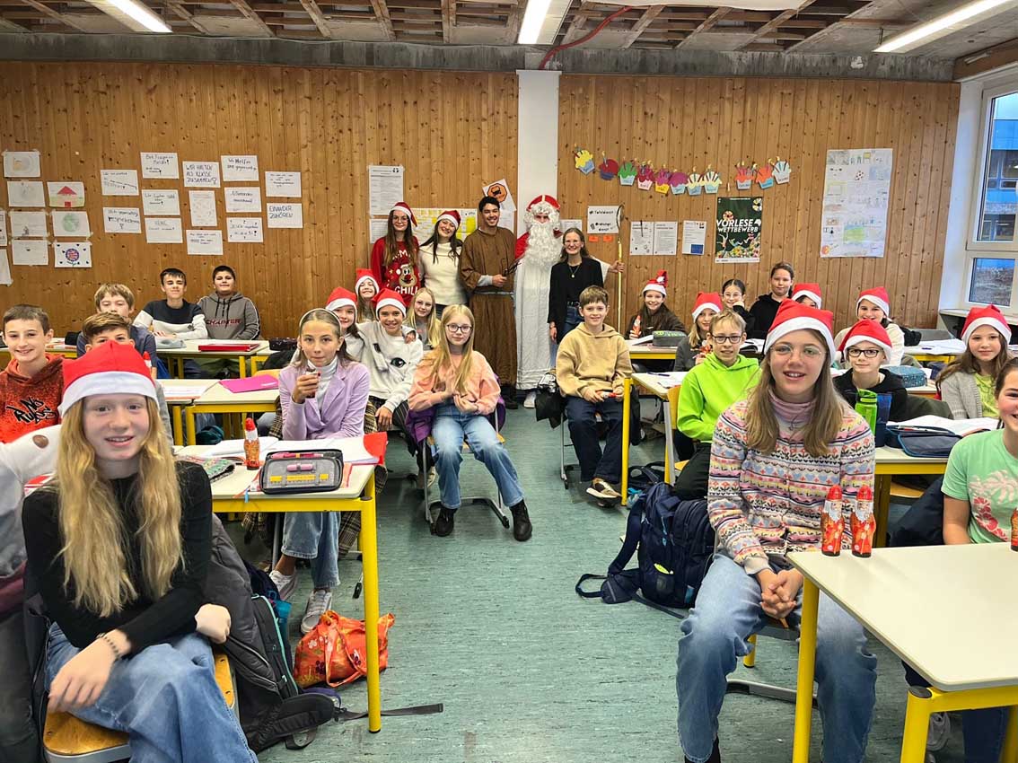 Wie jedes Jahr kam am 6. Dezember der Nikolaus ans Gymnasium! Die Schüler*innen der Jahrgangsstufen 11 und 12 waren am Vormittag unterwegs und verteilten Geschenke, welche im Vorhinein von ihren Mitschüler*innen gekauft werden konnten. Insgesamt wurden 232 Nikoläuse (aus fairem Handel), 83 Mützen...