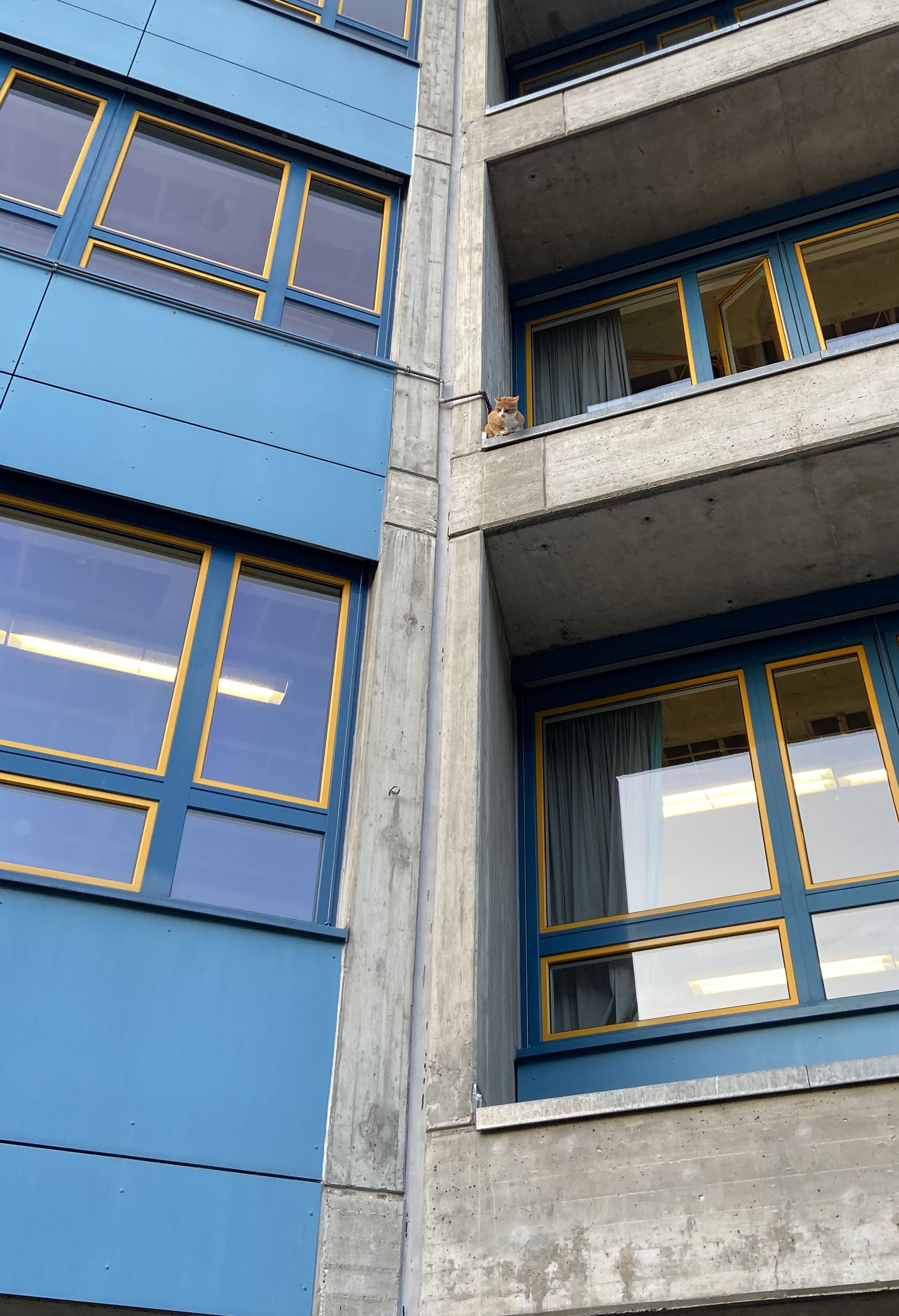 Eine Katze hatte es – wie auch immer sie das angestellt hat – auf die Fensterbrüstung in luftiger Höhe geschafft und steckte dort nun fest.