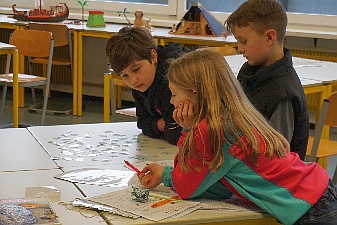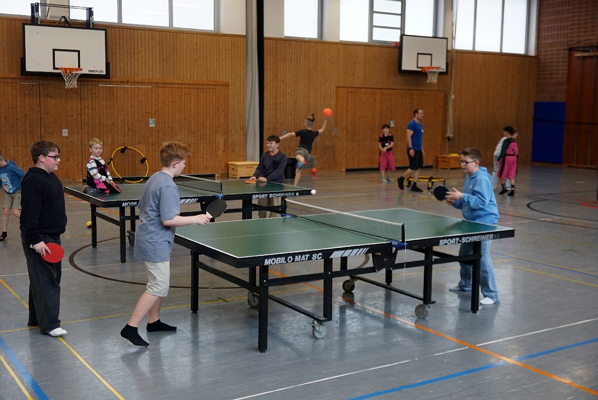Im Anschluss konnten Kinder und Eltern unsere Schule auf eigene Faust erkunden. In vielen Klassen- und Fachräumen präsentierten sich die einzelnen Fächer mit spannenden Aktionen: So konnte man Experimente durchführen, Rätsel lösen, sich beim Basteln oder Malen kreativ betätigen oder in der Sporthalle herumtoben. Besonders große Augen gab es im Biologieraum: Frisch geschlüpfte Küken und seltsam anmutende Stabheuschrecken wurden schnell zum Highlight des Tages.
