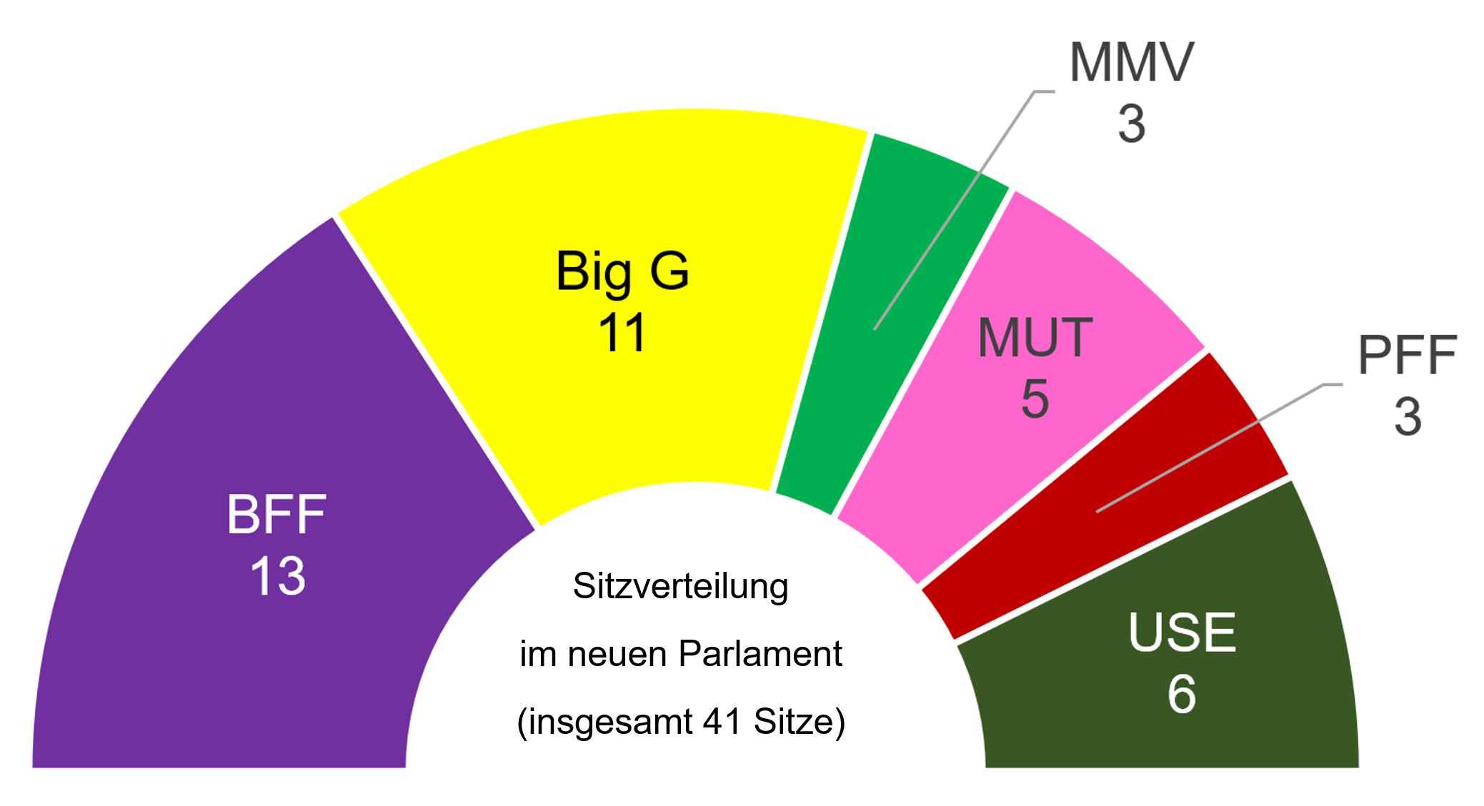 Die Parlamentswahl der deckenfreien Republik Bernecktal ist entschieden. Hier das Endergebnis: